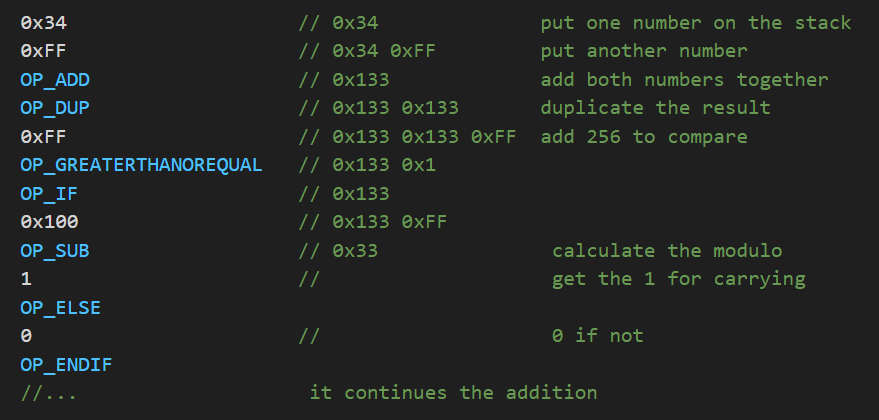 As you can see, even the simplest mathematical operation in Bitcoin Script is very costly in terms of opcodes.