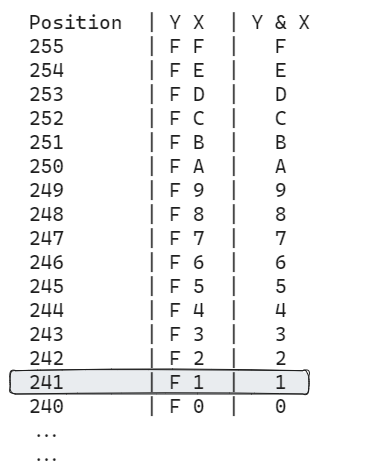 For instance, I have the table for Y = 0 and the results for X from 0 to 15. Then for Y = 1, there’s no need to include the result of X = 0 as it is already in the previous table. By the time you get to the table for Y=15, you only need one element, X=15.