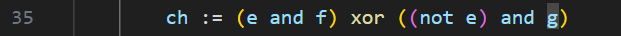 I chose an option (shown in the graph below) that I believe gave good results, even though I did not exhaustively try all the alternatives. One interesting characteristic of these operations is that, unlike addition or rotation which move the bits within the 32-bit word, the bitwise logical operations do not. When there are multiple operands, this allows for the application of all the operations to all the nibbles in one column position simultaneously before considering the next nibble.
