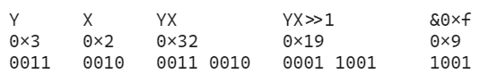 YX >> 1 == (Y << 3 + X>> 1) & 0xF