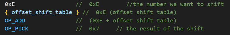 And then, to get the result, we just need to obtain the proper offset inside the table. Note that the table is generated in reverse, as the pick operation uses the depth in the stack to obtain the position of the result.