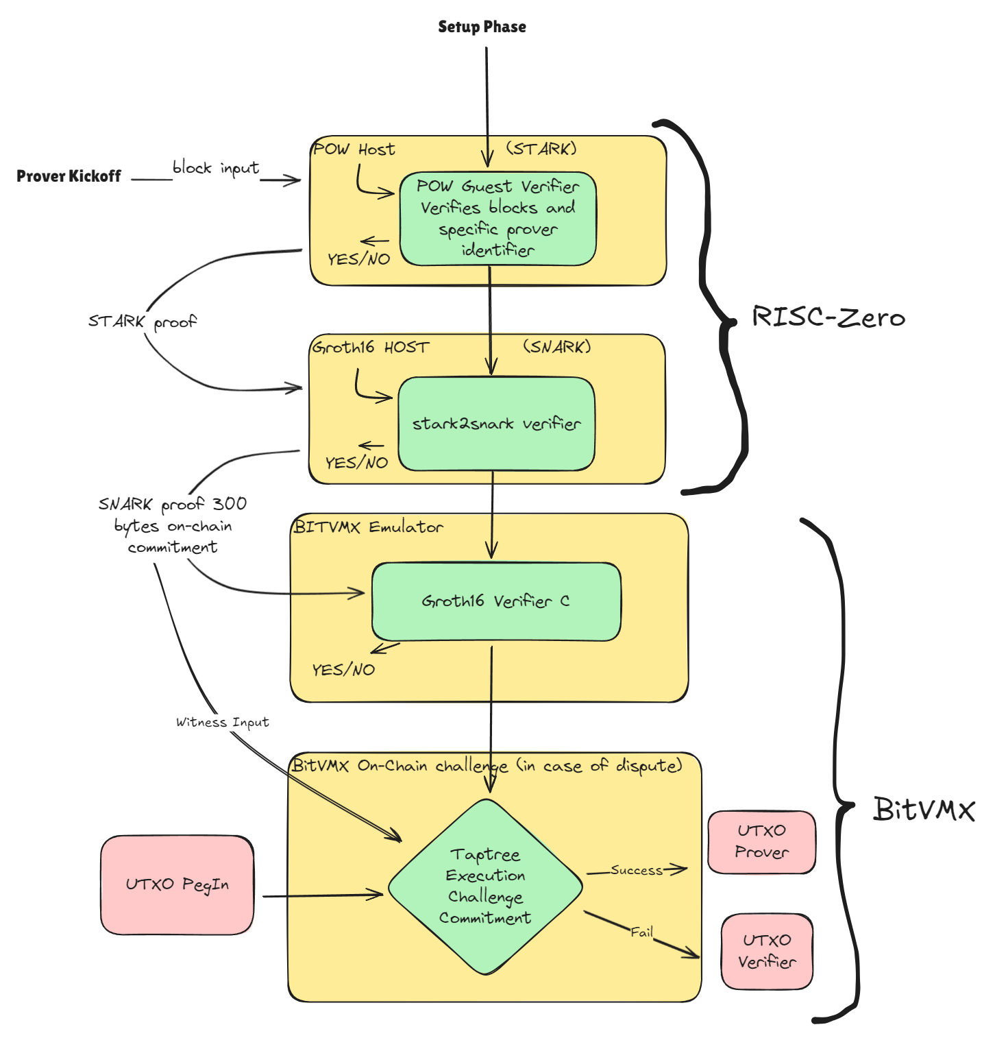 (Note: the use of RISC-V as architecture for BitVMX is coincidental and operates independently of the RISC Zero zkVM. The verification programs are different between these two layers)